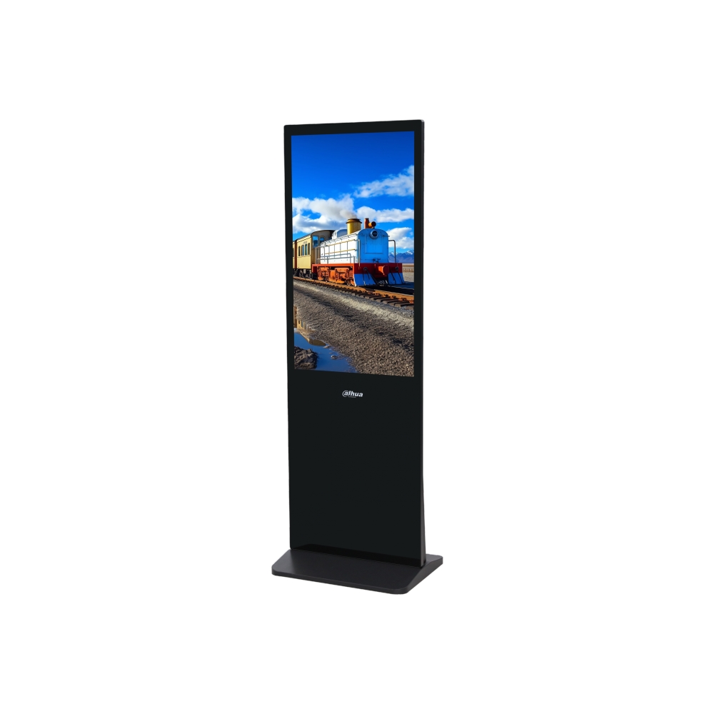 Digital signage LED da 43" 4K UHD in appoggio, formato 9:16, risoluzione 2160×3840, luminosità 350 nit, contrasto 1000:1, angolo di visione 178°/178°, 1 RJ45, 2 USB, 1 slot TF, 1 HDMI, 1 audio 3.5 mm, 2 speaker 5 W, sistema operativo Android 8.1, alimentazione 100~240 Vac <60 W, MTBF 30000 h